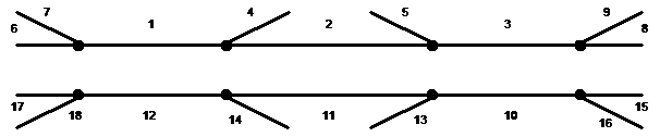 It can be seen that each junction set contains part of the two adjoining junction sets. Each of the assessed flows is associated with the Links (sections of carriageway) numbered from 1 to 18. The flow at Link 1 is compared with the sum of those at Links 6 and 7, with the sum of the flows at Links 2 and 4 and with the flow at Link 12. If all agree within a defined limit of accuracy, then all can be regarded as accurate. If they all disagree, the flow on Link 1 is inaccurate. If one is wrong and the others are correct, the flow on Link 1 is almost certainly accurate and the inaccuracy will be in the compared flows. All the comparisons can be verified against each other. For example, the flow at Link 2 can be verified against those at Links 3 and 5 and against that at Link 11, whilst the flow at Link 4 can be verified against that at Link 14, etc. Where inconsistencies occur, they can easily be ascribed to an individual flow. However, if there are multiple inaccuracies, the identification of the inaccurate flows may become more laborious, but these occurrences can be expected to decrease as the analysis proceeds.